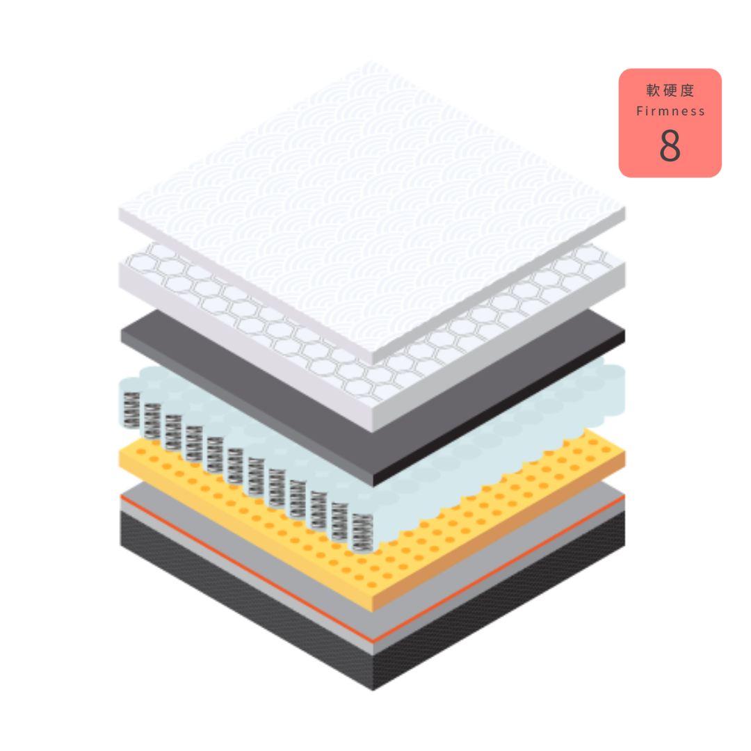 The mattress is finished with an Ice Touch Cover that feels soft, smooth, and instantly refreshing to the touch. It can effectively lower your skin’s perceived temperature by up to 5°C. Whether it’s a humid night or the peak of summer, you’ll experience a cool, dry, and deeply comfortable night’s sleep.
